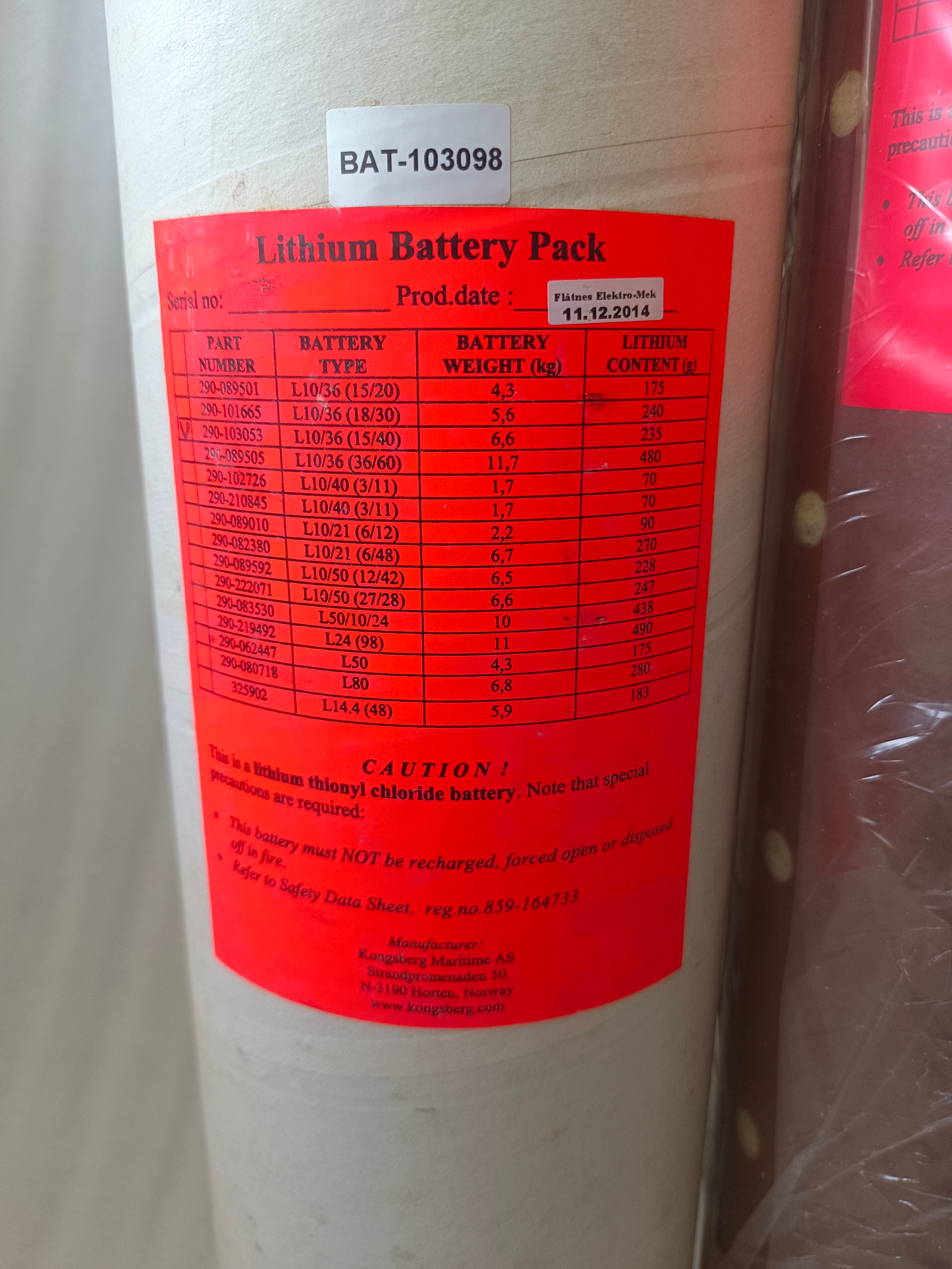 KONGSBERG MARITIME LITHIUM BATTERY L10/36